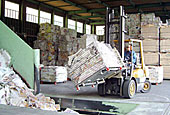 株式会社後藤は、様々な企業や団体から発生する古紙を回収しています。回収範囲は近畿・中部を中心に西日本をカバーするネットワークを設けています。そして、回収してきた古紙を、より効率的な再利用のために、目的に応じて上級・下級に分別、各製紙メーカーに納入しています。
